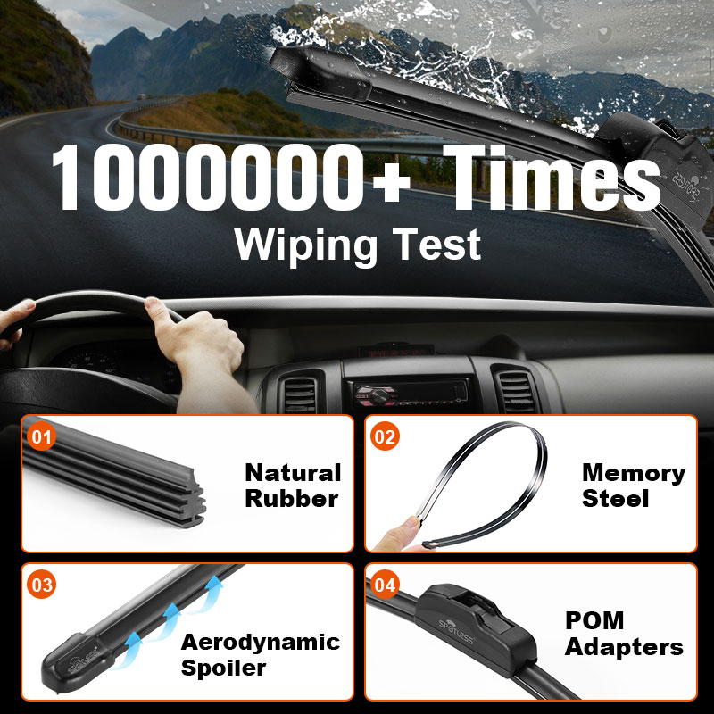 そのフレームレスデザインとテフロンでコーティングされたゴムのおかげで、 Spotlessは、標準のブレードよりも最大60%静かに動作します (ラボテスト)。プレミアムカーの所有者に適しています 信頼できるバルクワイパーブレードサプライヤーから調達するバイヤー。