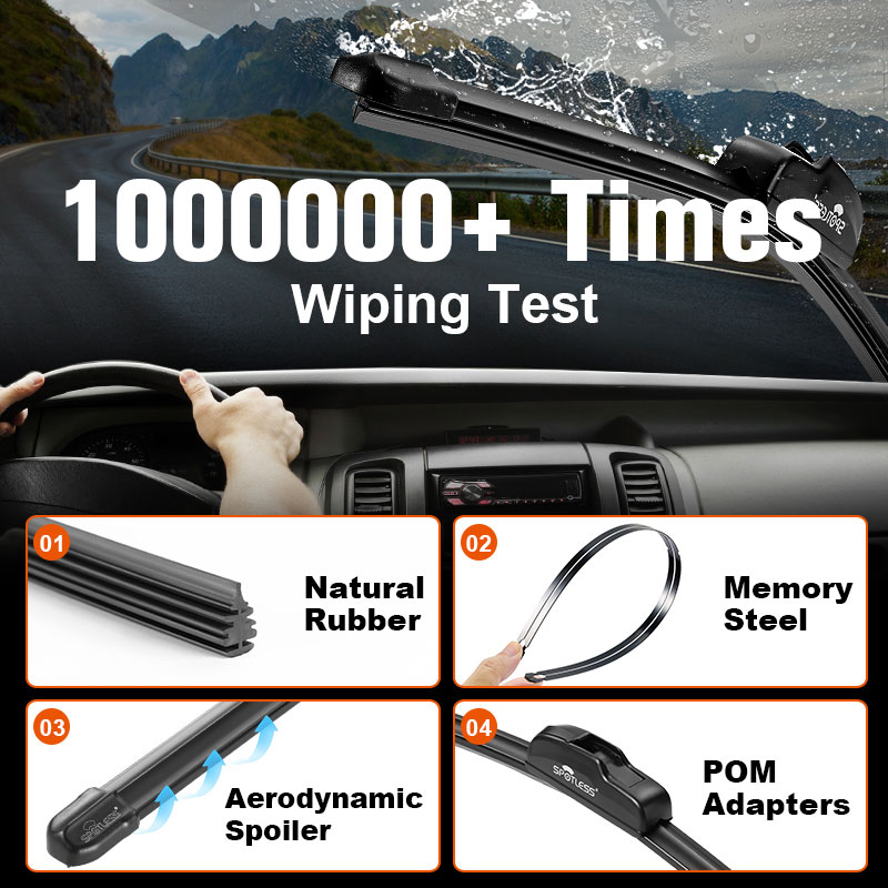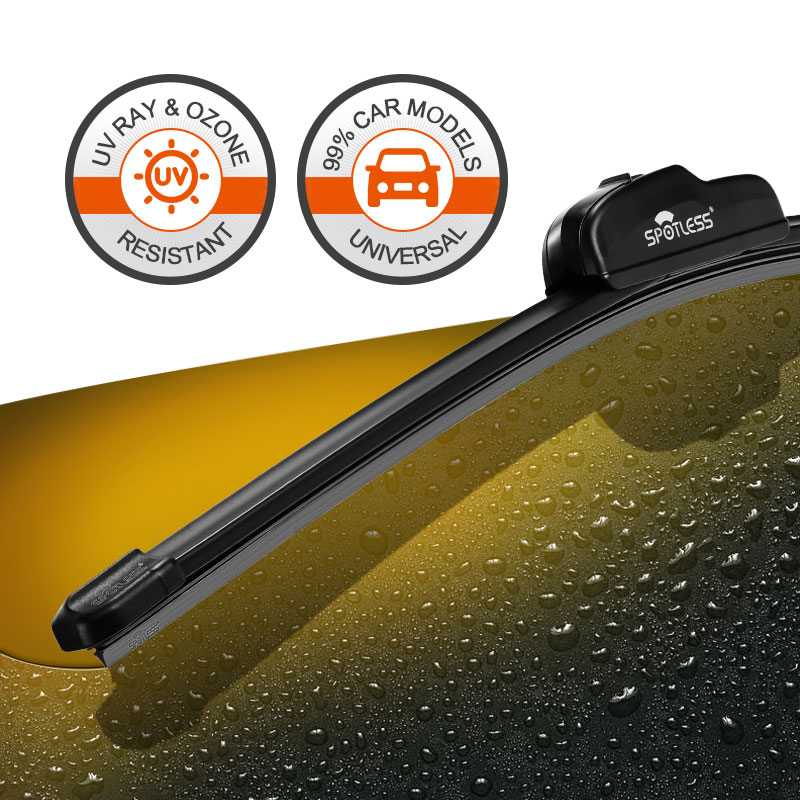 Bekaertの高張力スプリングを使用して、提供しています 空力的なフラットワイパーは強く、さらには圧力でさえあります 最大120 km/hの速度。完全なTPEシェルには合理化されています 風の騒音を最大40%削減するデザイン 端で持ち上げることなく、清潔でストリークのない拭き取り。
