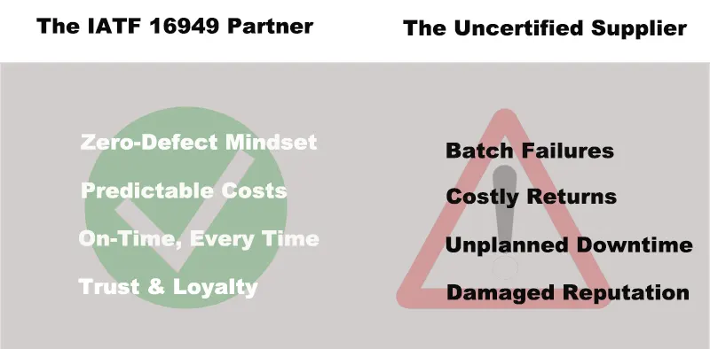 これは単なる不運ではありません。これは、品質に対する体系的なアプローチを持たないサプライヤーによる予測可能な結果です。IATF 16949。