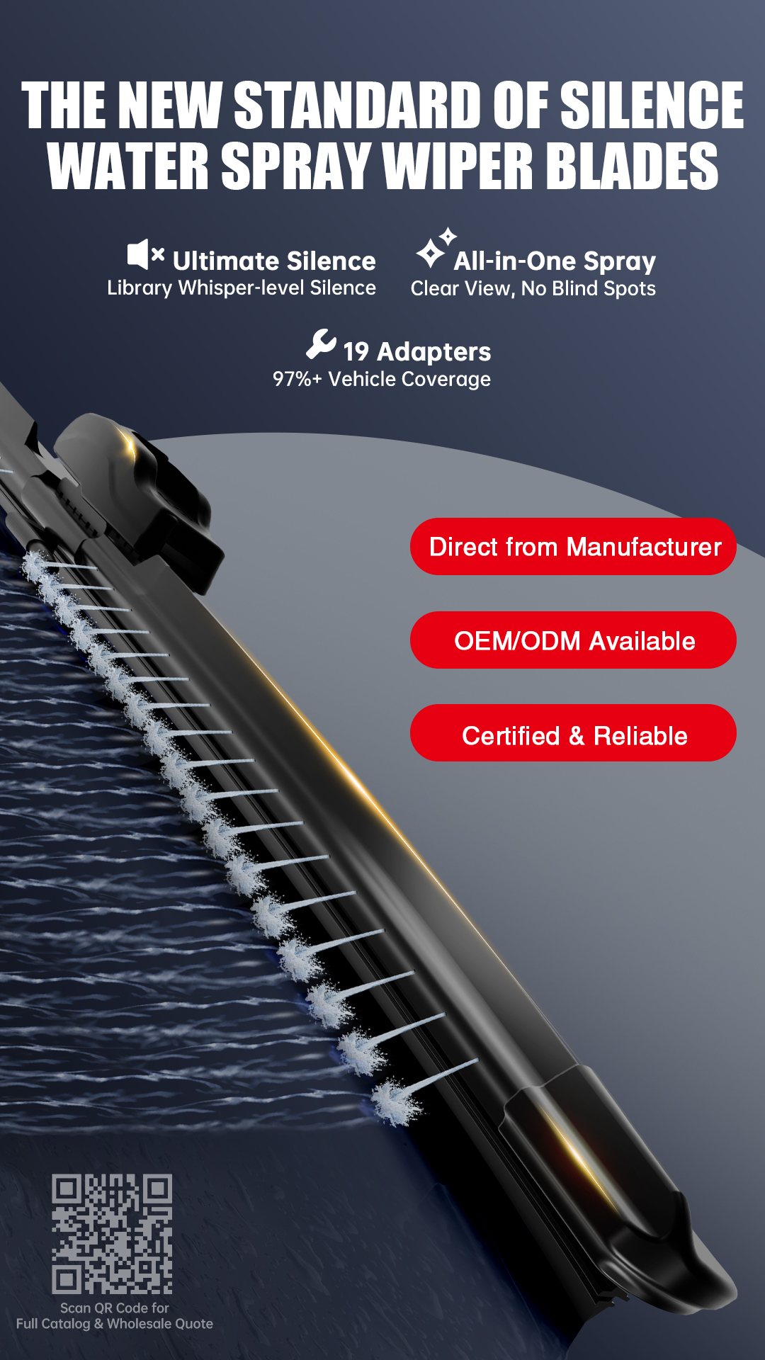 乾燥摩擦の代わりに、当社のシステムは各スイープの前に細かい水膜を解放し、通常のブレードでは回避できないビビリや振動を軽減します。その結果、穏やかでクリアで洗練された拭き取り動作が実現され、日常の製品が快適なアップグレードに変わります。