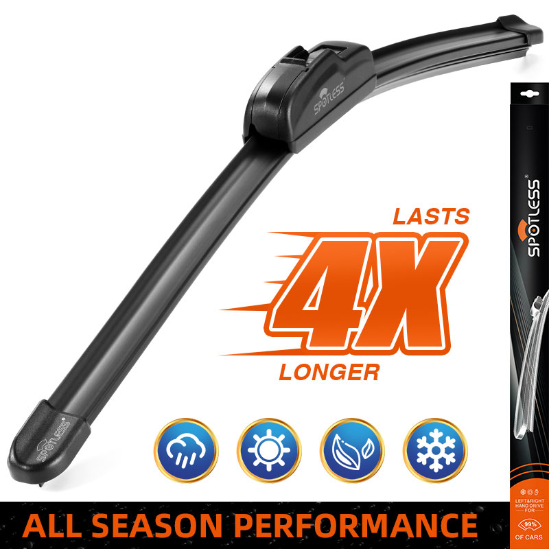 私たちのフレームレスフロントガラスワイパーは、テフロンコーティングで作られています 滑らかで静かに滑るゴム。彼らは4回です より耐摩耗性が高く、きれいになり、長持ちし、あなたを救います トラブルとお金の両方!